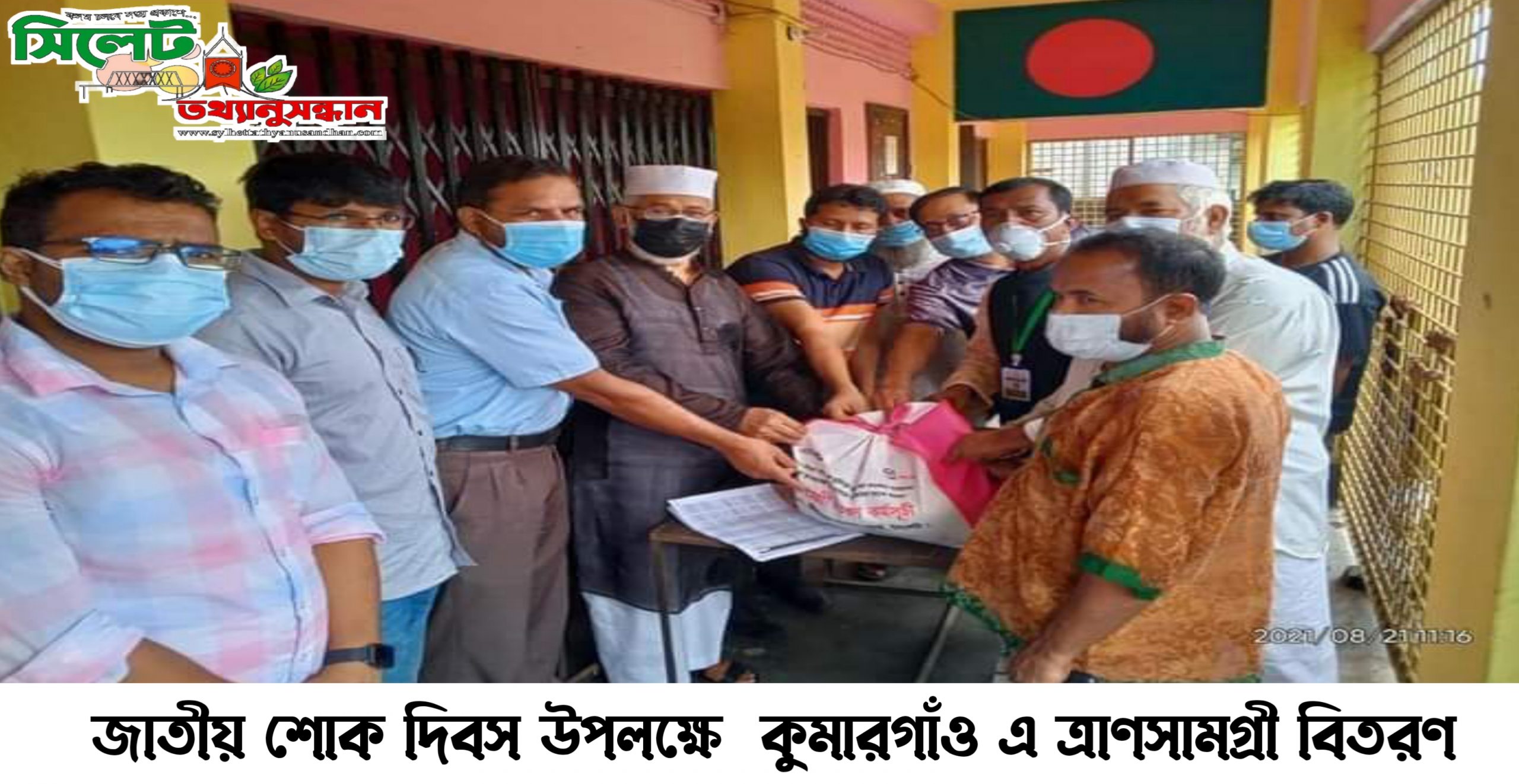জাতীয় শোকদিবস ও জাতির জনক বঙ্গঁবন্ধুর ৪৬তম শাহাদাত বার্ষিকি উপলক্ষে বাংলাদেশ বিদ্যুত উন্নয়ন বোর্ড সিলেট কুমাারগাঁও শাখার কর্মকর্তা ও কর্মচারীদের উদ্যোগে আজ ২১-০৮-২০২১ ইংরেজি শনিবার অসহায় গরীব মানুষের মাঝে প্রধান অতিথি হিসাবে ত্রানসামগ্রী বিতরণ করছেন সিলেট সদর উপজেলা পরিষদের বারবার নির্বাচিত চেয়ারম্যান আলহাজ্ব আশফাক আহমদ। এতে অংশগ্রহণ করেন সিলেট বিদ্যুত উন্নয়ন বোর্ড কুমারগাঁও শাখার কর্মকর্তা ও আওয়ামী লীগের স্থানীয় নেতৃবৃন্দ।