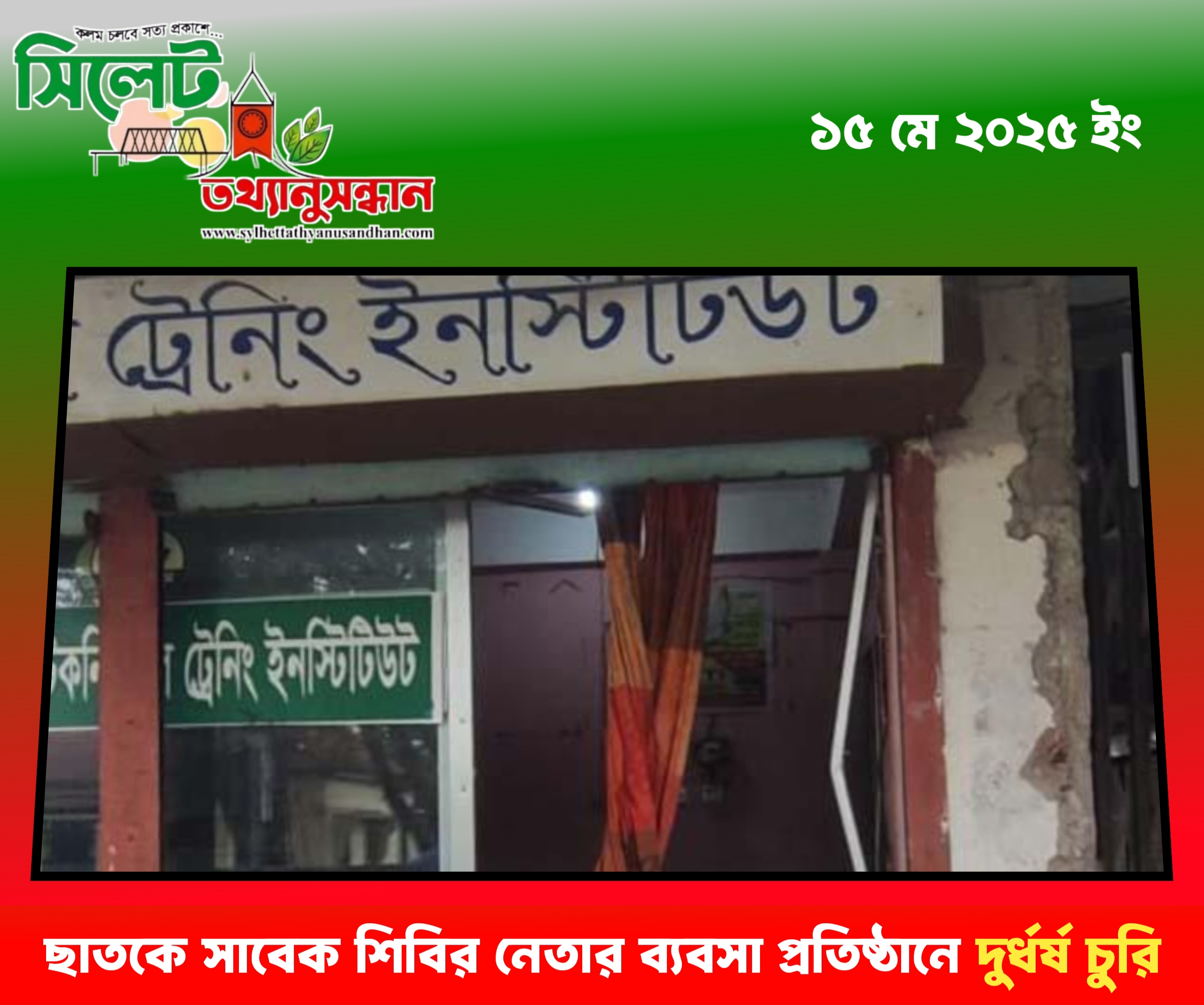 সুনামগঞ্জের ছাতক ডিগ্রী কলেজ রোডে অবস্থিত ছাতক টেকনিক্যাল ট্রেনিং ইনস্টিটিউটের আওতাধীন সবুজ কম্পিউটারে দুর্ধর্ষ চুরির ঘটনা ঘটেছে।