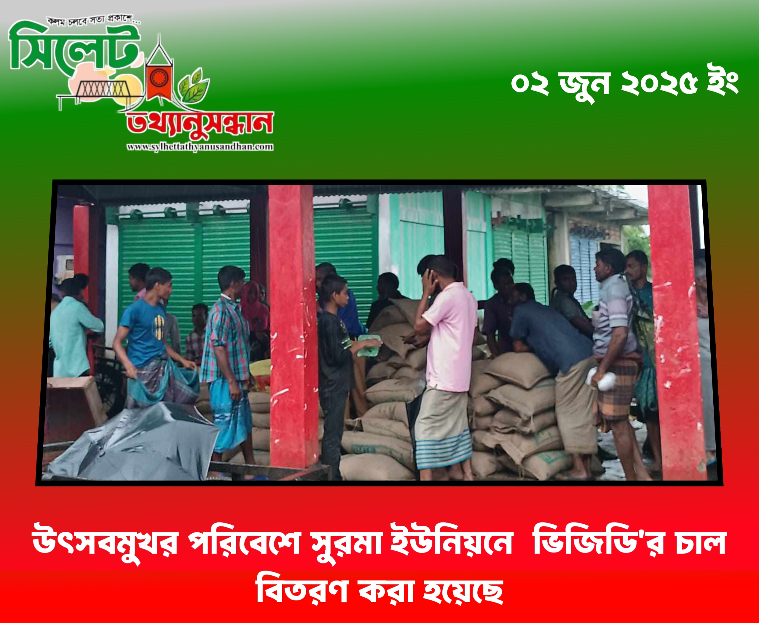 সুনামগঞ্জের দোয়ারাবাজার উপজেলার সুরমা ইউনিয়নে নারীদের জন্য বরাদ্দকৃত ভিডব্লিওবি (ভিজিডি) ৫ মাসের চাল উৎসবমুখর পরিবেশে বিতরণ করেন ইউপি চেয়ারম্যান হারুন অর রশিদ।