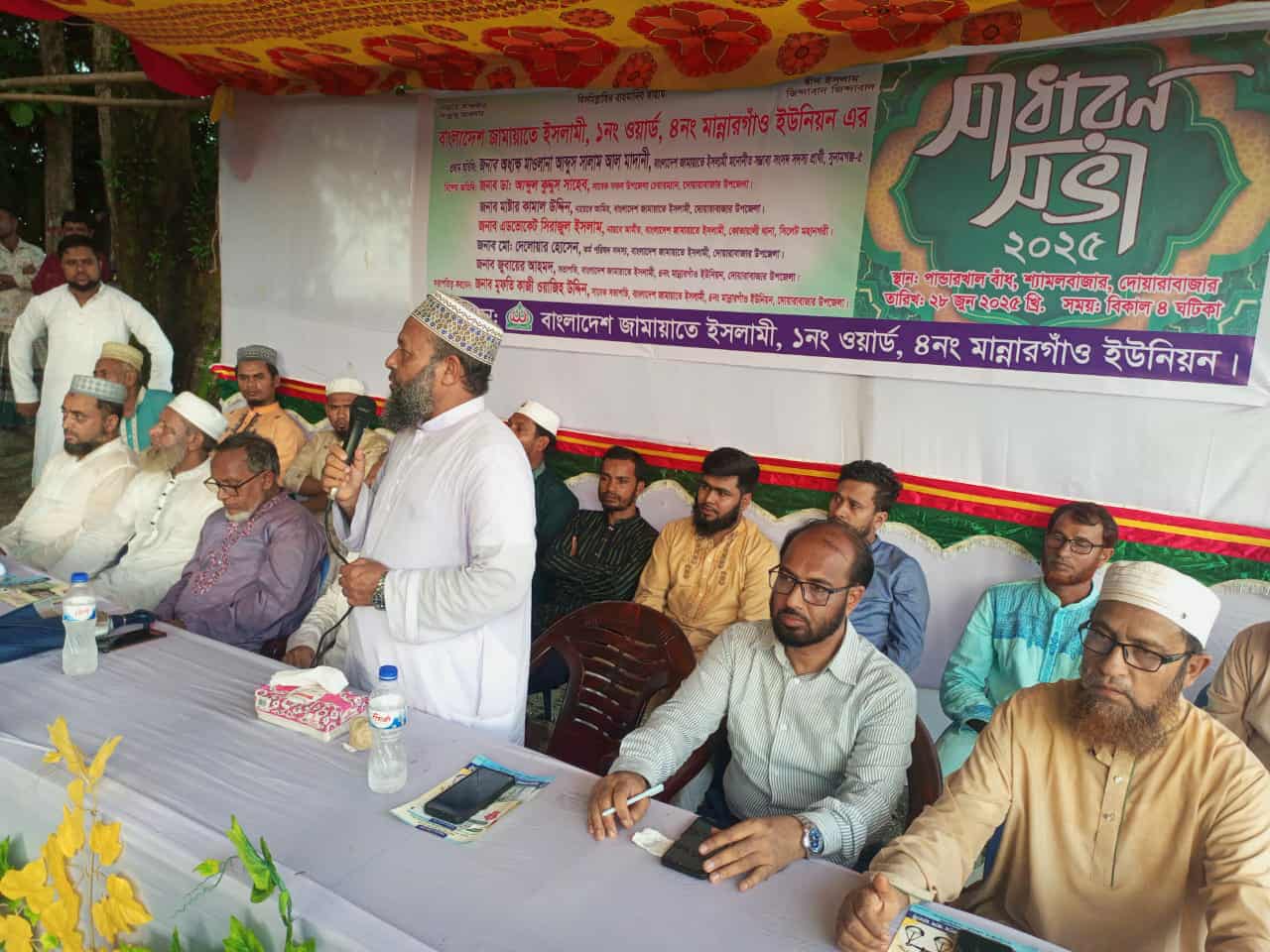 মোঃ দেলোয়ার হোসেন কর্মপরিষদ সদস্য বাংলাদেশ জামায়াতে ইসলামী দোয়ারাবাজার উপজেলা মোঃ জুবায়ের আহমেদ সভাপতি বাংলাদেশ জামায়াতে ইসলামী ৪নং মান্নার গাঁও ইউনিয়ন, সমাপনী বক্তব্য রাখেন সভাপতি মুফতি কাজী মোঃ ওয়াজিহ উদ্দিন ।
