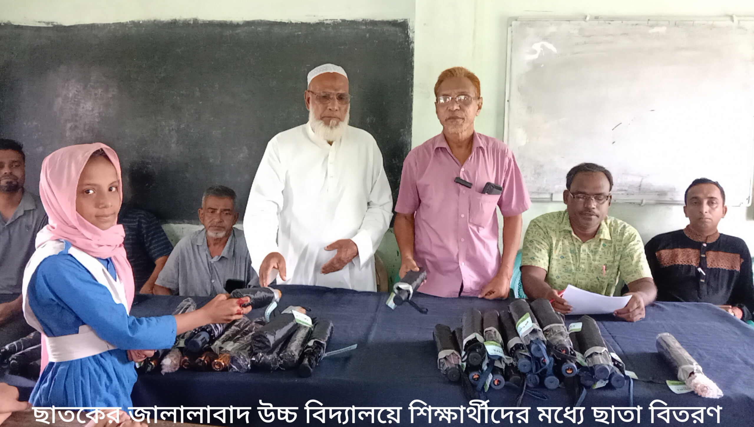 সুনামগঞ্জের ছাতক উপজেলার চরমহল্লা ইউপির জালালাবাদ উচ্চ বিদ্যালয় চরগোবিন্দ এ যুক্তরাজ্য প্রবাসী জসিম উদ্দিনের অর্থায়নে শিক্ষার্থীদের কে ছাতা বিতরণ করা হয়েছে।