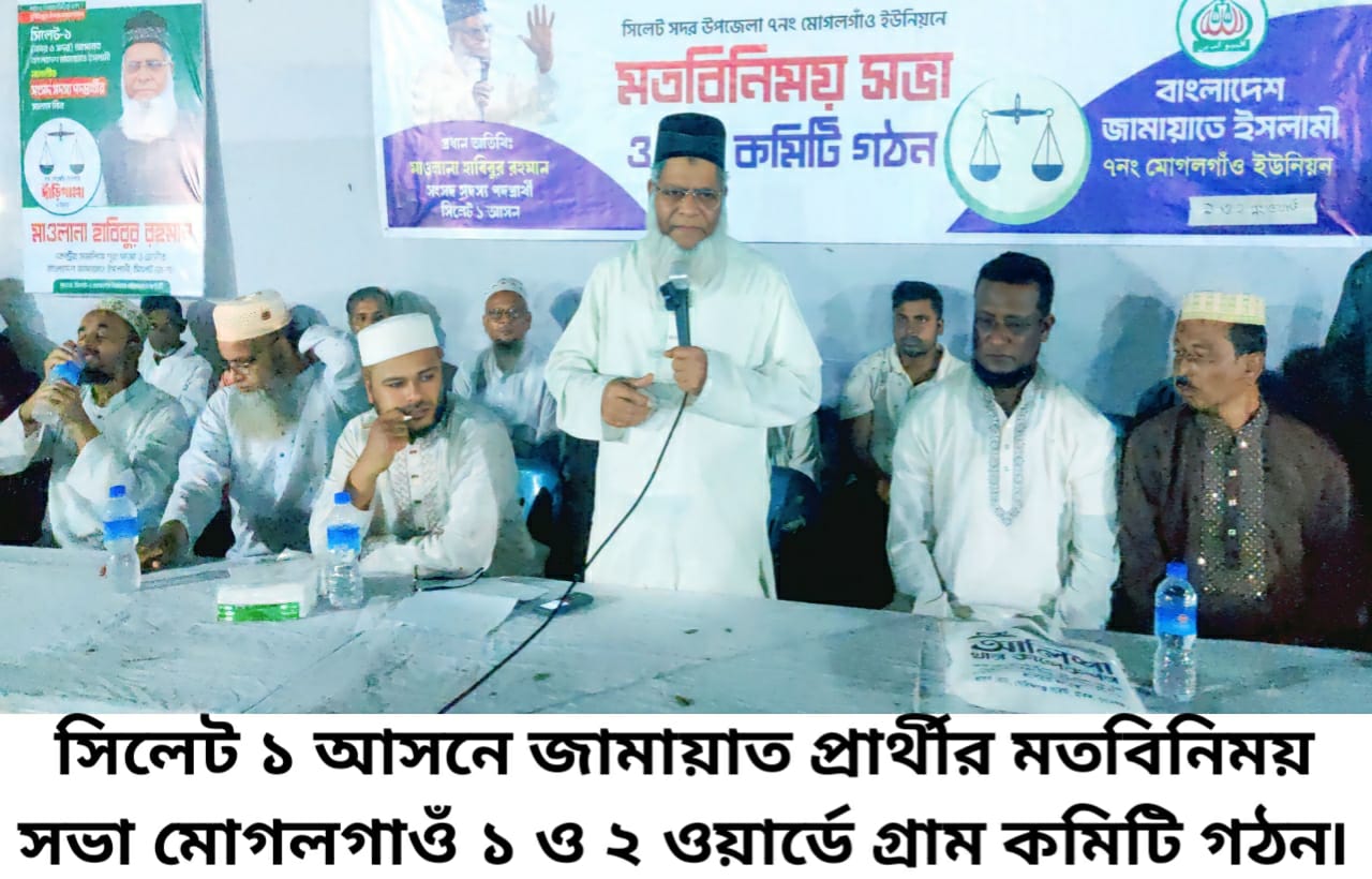 বাংলাদেশ জামায়াতে ইসলামীর মনোনীত সংসদ সদস্য পদপ্রার্থী (সিলেট-১ আসন) মাও হাবিবুর রহমান জনসম্পৃক্ততা বাড়াতে সিলেট সদর উপজেলার ৭নং মোগলগাওঁ ইউনিয়নের ১ ও ২নং ওয়ার্ডে এক মতবিনিময় সভা ও গ্রাম কমিটি গঠন করেছেন। স্থানীয় জনগণের স্বতঃস্ফূর্ত অংশগ্রহণে এ সভায় ইসলামী মূল্যবোধ ও জনসেবার বার্তা তুলে ধরেন প্রধান অতিথি মাও হাবিবুর রহমান।