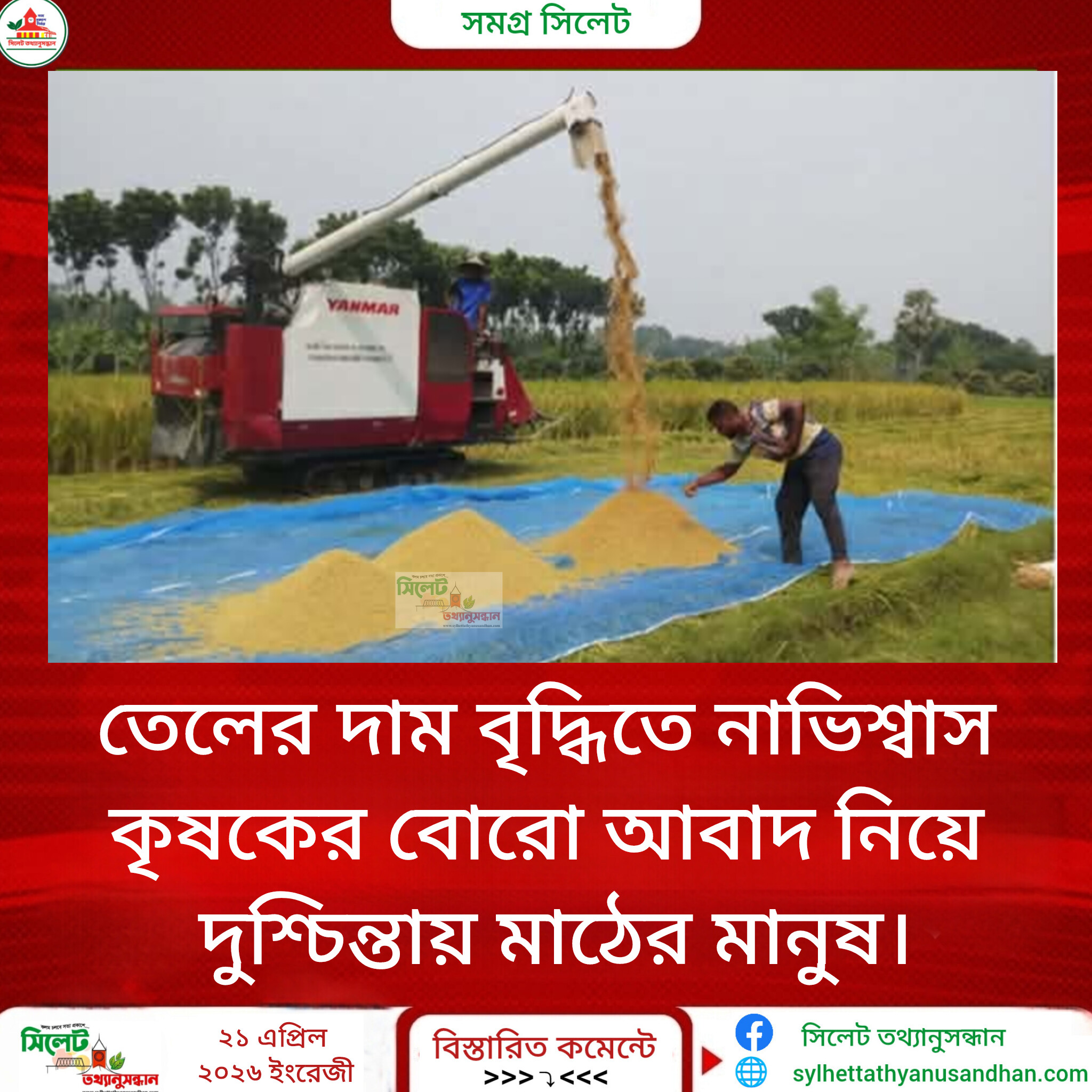 সুনামগঞ্জের ছাতক ও দোয়ারাবাজারের হাওর পাড়ের কয়েকজন কৃষকের সাথে কথা বলে জানা যায়, সারের দাম বৃদ্ধির ধাক্কা সামলাতে না সামলাতেই তেলের এই মূল্যবৃদ্ধি তাদের ‘মড়ার উপর খাঁড়ার ঘা’ হয়ে দাঁড়িয়েছে। অনেক কৃষক বলছেন, এভাবে খরচ বাড়তে থাকলে চাষাবাদ ছেড়ে দেওয়া ছাড়া আর কোনো পথ থাকবে না। শ্রমিকের মজুরি, পরিবহন খরচ এবং সেচ—সব মিলিয়ে উৎপাদন খরচ যে হারে বাড়ছে, ধান বিক্রি করে সেই আসল টাকা উঠবে কি না, তা নিয়ে তারা সন্দিহান।
