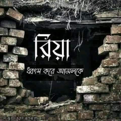 আল্লাহ আমাদের রিয়ামুক্ত ইবাদতের তৌফিক দান করুক। আল্লাহুম্মা আমিন।