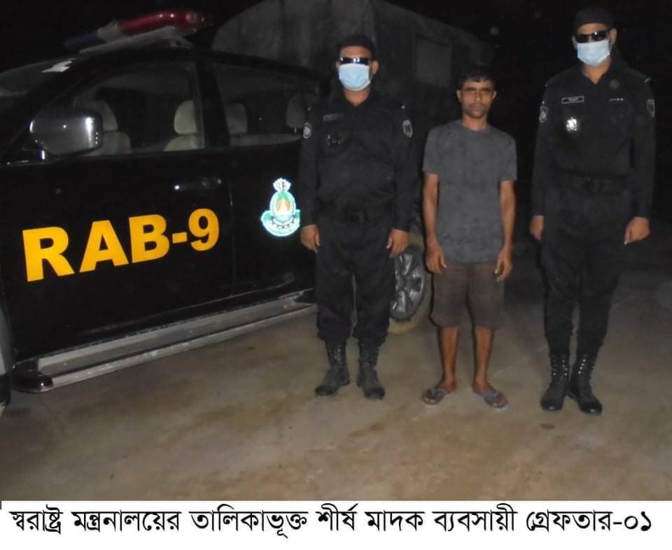 র্যাপিড অ্যাকশন ব্যাটেলিয়ান-৯ সিপিসি-২ শ্রীমঙ্গল ক্যাম্পের অভিযানে স্বরাষ্ট্র মন্ত্রনালয়ের তালিকাভুক্ত শীর্ষ মাদক ব্যবসায়ী জাসেম আলী (৩৫)কে গ্রেফতার।